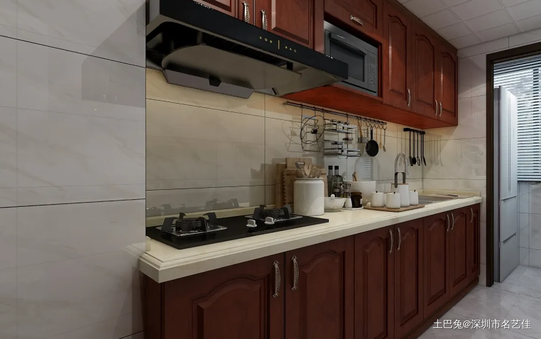 L型设计,凸显高级,且不浪费一点空间,灶台宽敞,足够使用,吊柜材质优良,易清洁