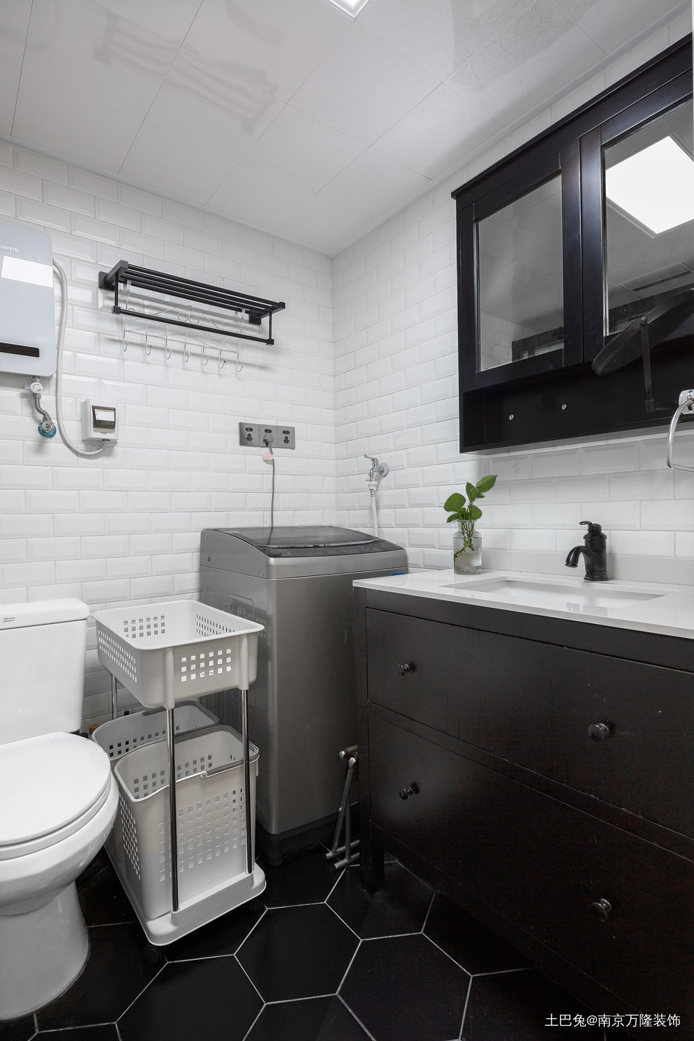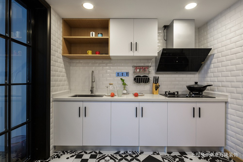 小小的空间,大大的容纳,墙面同样采用了北欧经典白色面包砖,地面铺以黑色六角砖,黑白对比强烈,视觉上给人一定的冲击力。