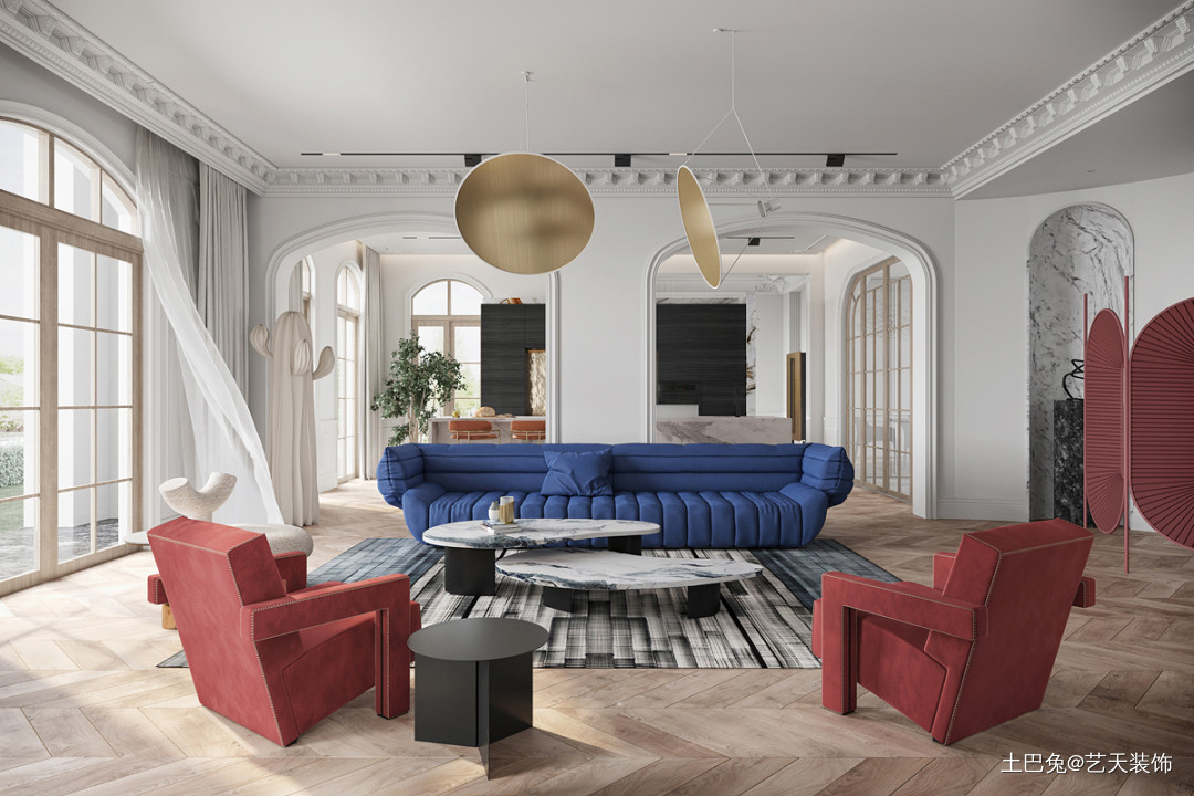 客厅白色定制皮革沙发和坐榻彰显了生活品质,搭配专属定制抱枕,灰蓝色布艺单人沙发和金属装饰的大理石茶几与白色沙发相辅相成,金属三维挂画是现代时尚的产物,空间在彰显时代气脉的同时,又不失内敛稳重。土耳其进口定制,地毯高贵且不单调,沉浸在华贵的细节,散发出独特的沁人魅力。