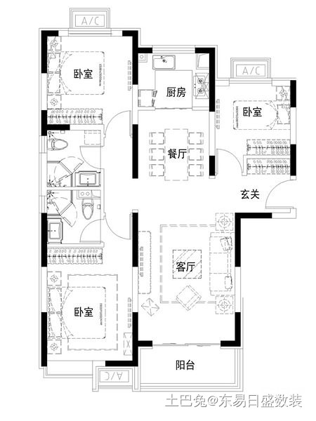设计需求:此房子是一对丁克中年夫妇,标准的三居室两厅一厨两卫两阳台,夫妻俩是自由工作者,需要一个空间办公,需要衣帽间,不喜欢繁琐的东西,喜欢简单而不俗气格调,温暖的氛围,是他们对家的渴望。