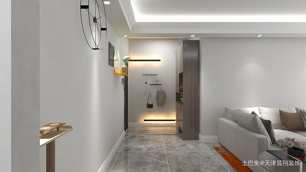 玄关空间不大,简单放置了玄关柜和随手挂置的小物件。