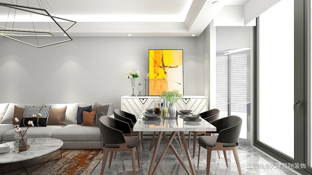 餐厅放置在阳台旁边,视野开阔空间合理。