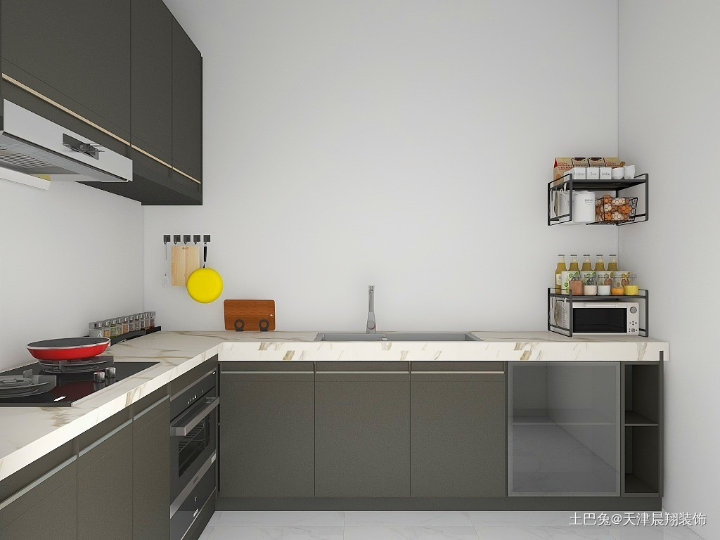 厨房空间不大,又不能拆墙,所以尽量让整个空间使用合理,收纳储物容量大。
