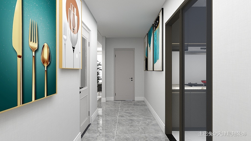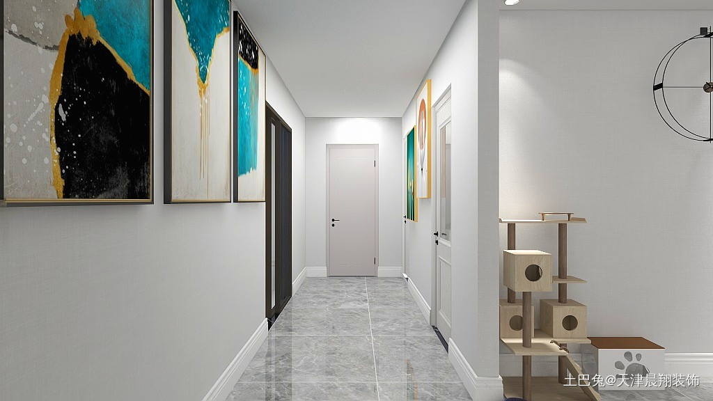 走廊装饰简单,颜色明亮,整体空间感通透。