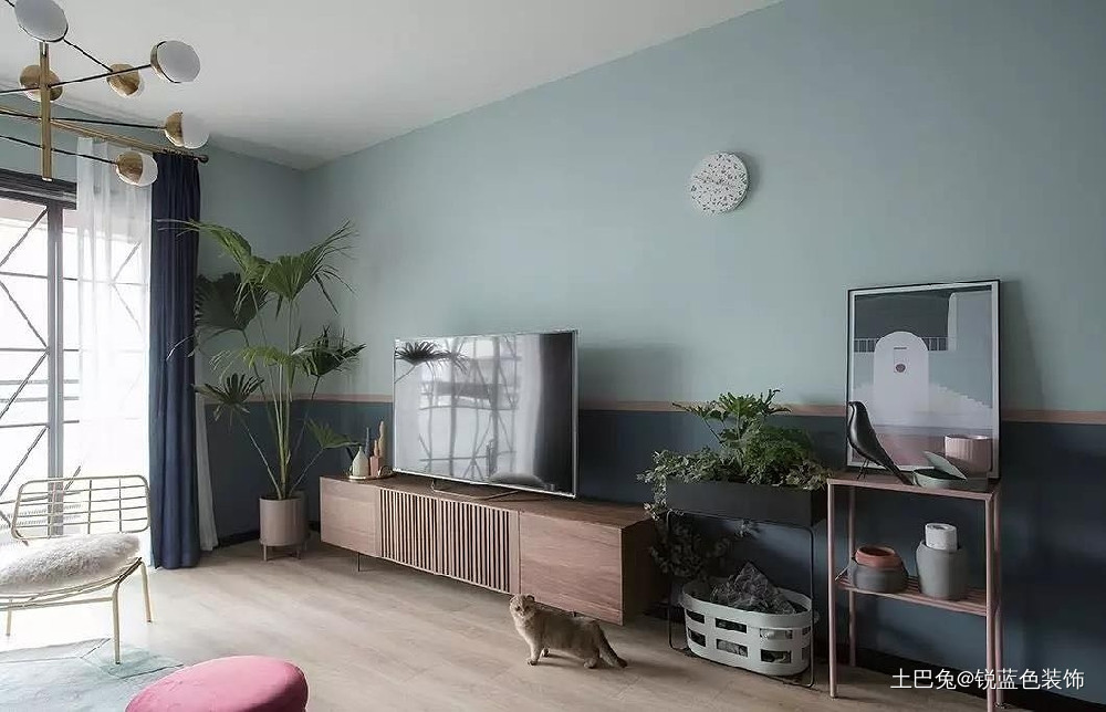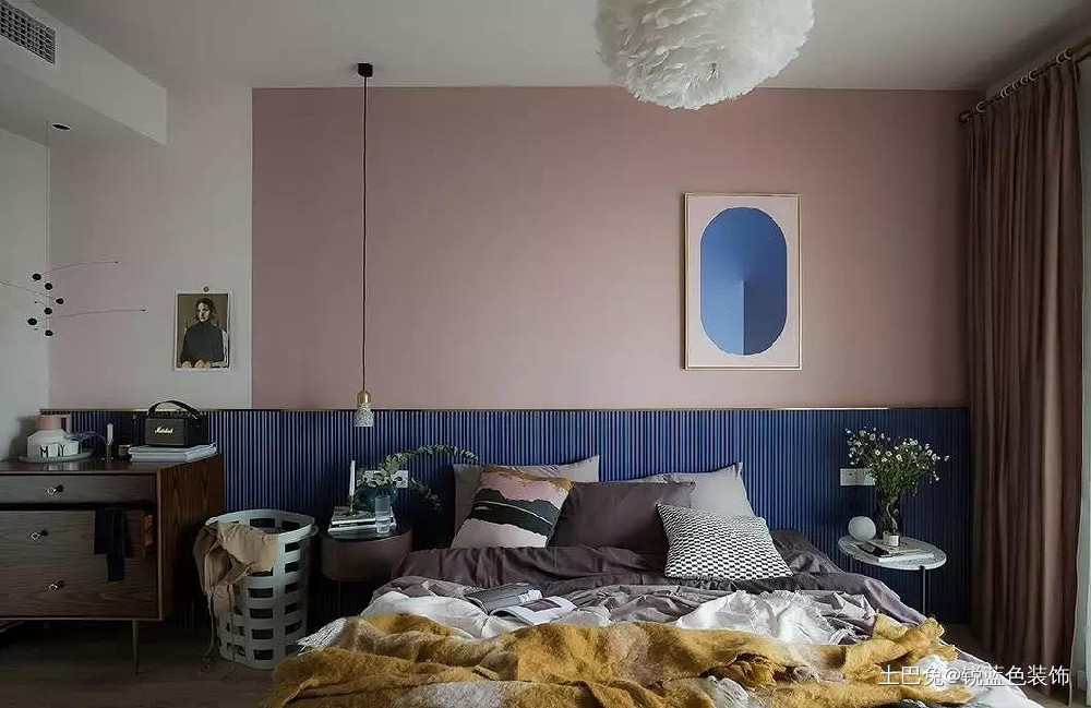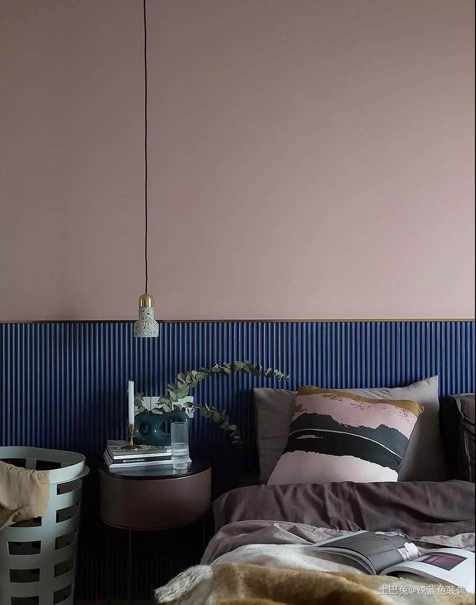 颜色的运用发挥的淋漓尽致,即稳重而不失凌乱,墙面运用两种颜色碰撞,既有个性,有很唯美。去除多余的石膏线,顶面和墙面用同一种颜色,使之成为一整体。
