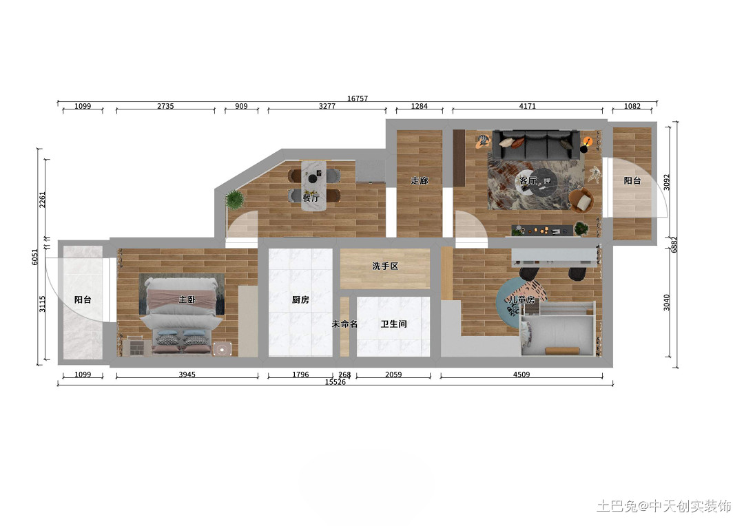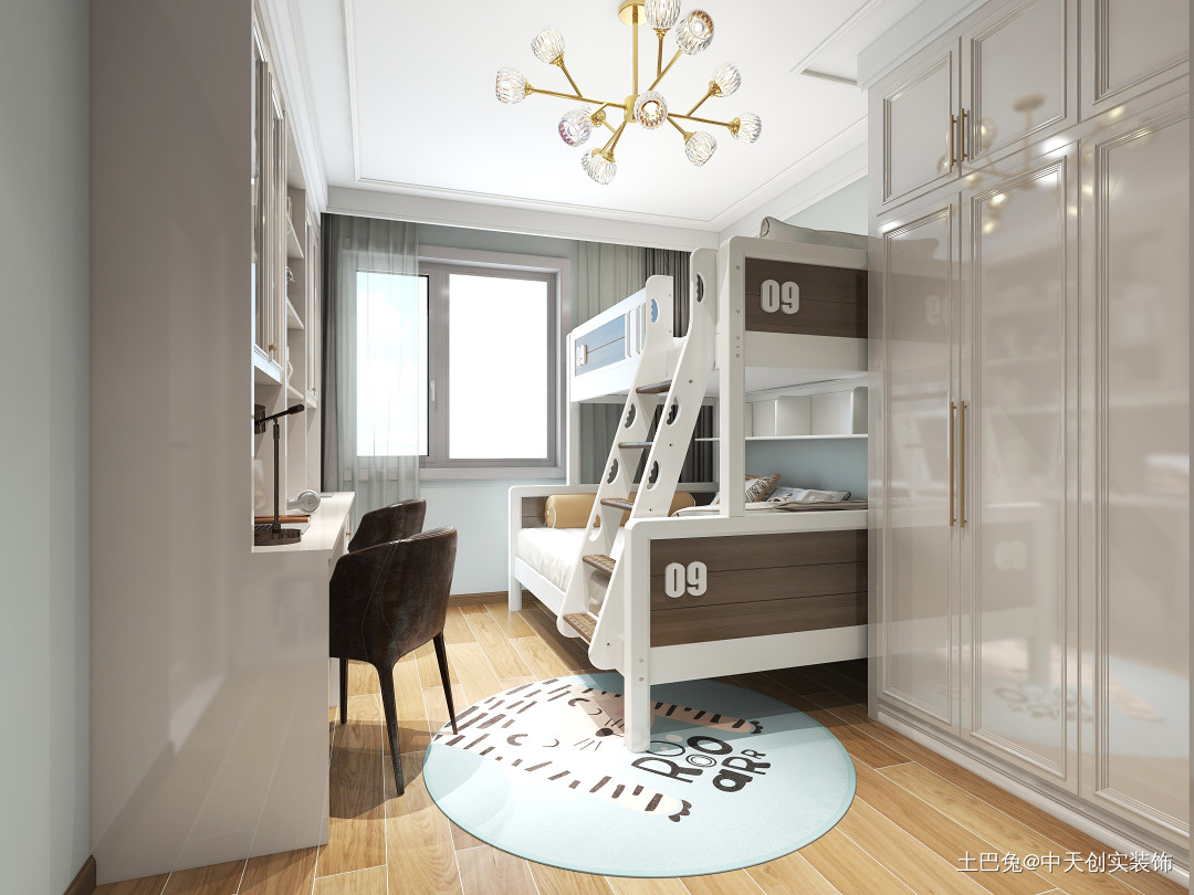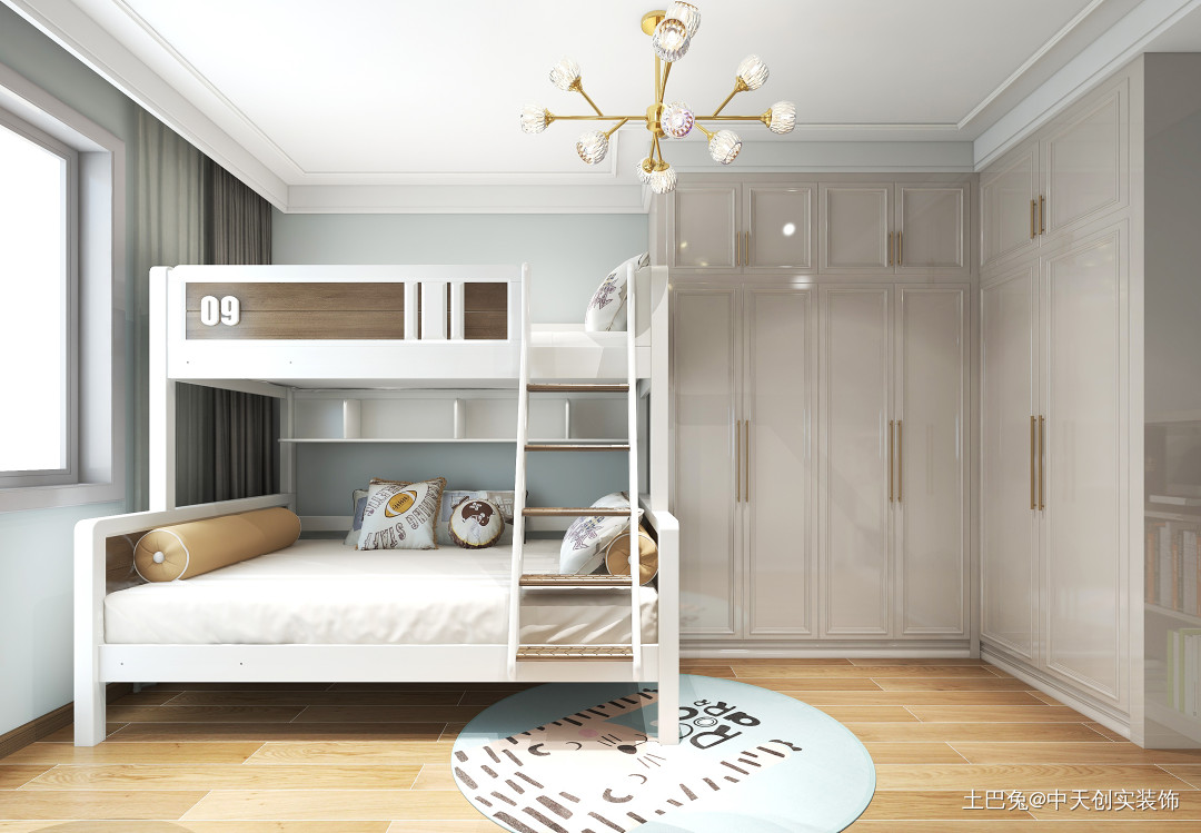 本案一家四口居住,儿童房因为2个宝宝同住考虑上下床,留出更大空间作为孩子的活动空间,同时增项储物。在风格上最大的亮点在于让普通的二居空间变得不简单,整体感更好、更加有内容!