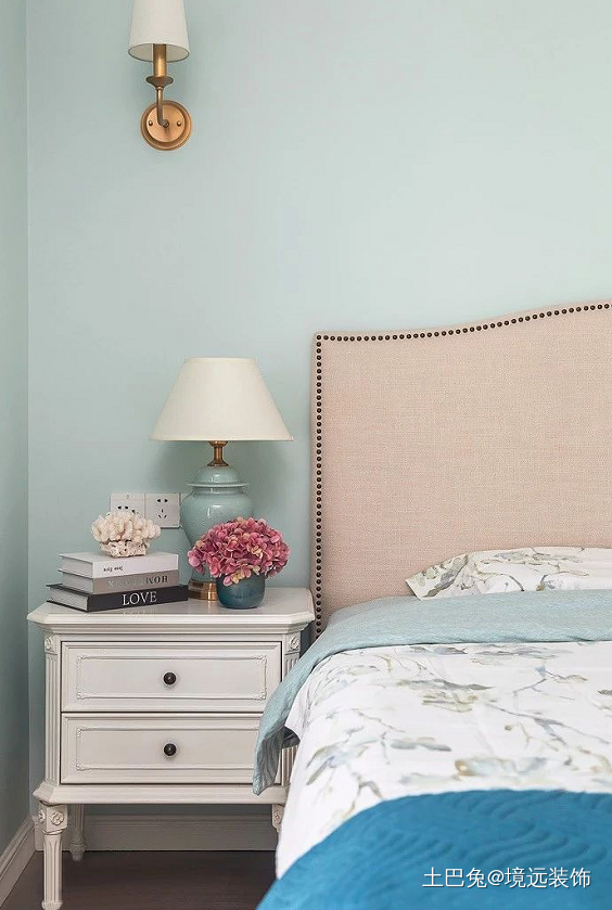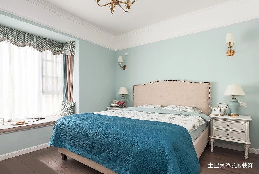 主卧选择低明度的复古蓝为主色调