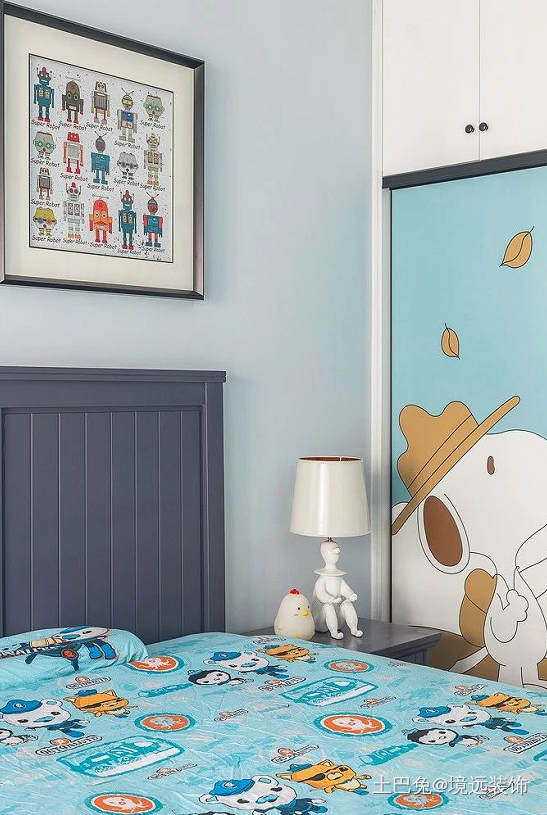 儿童房以蓝色为主调,设计师运用卡通元素