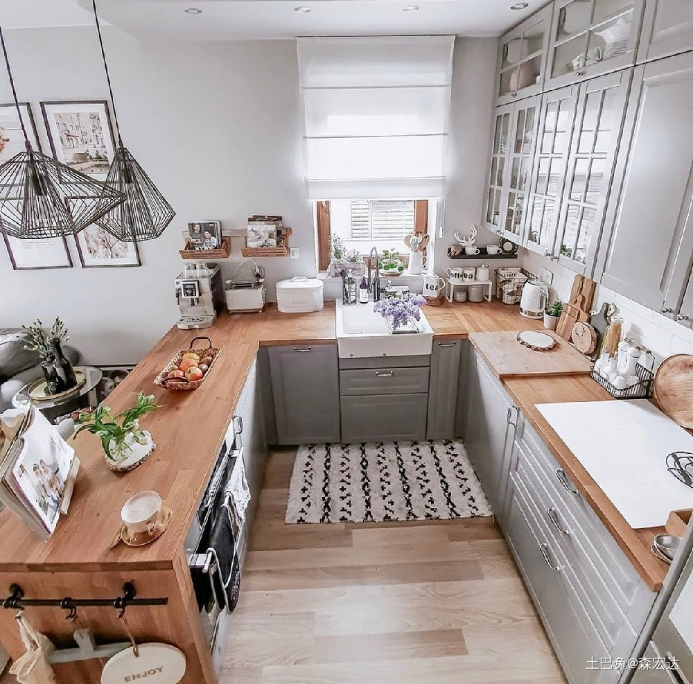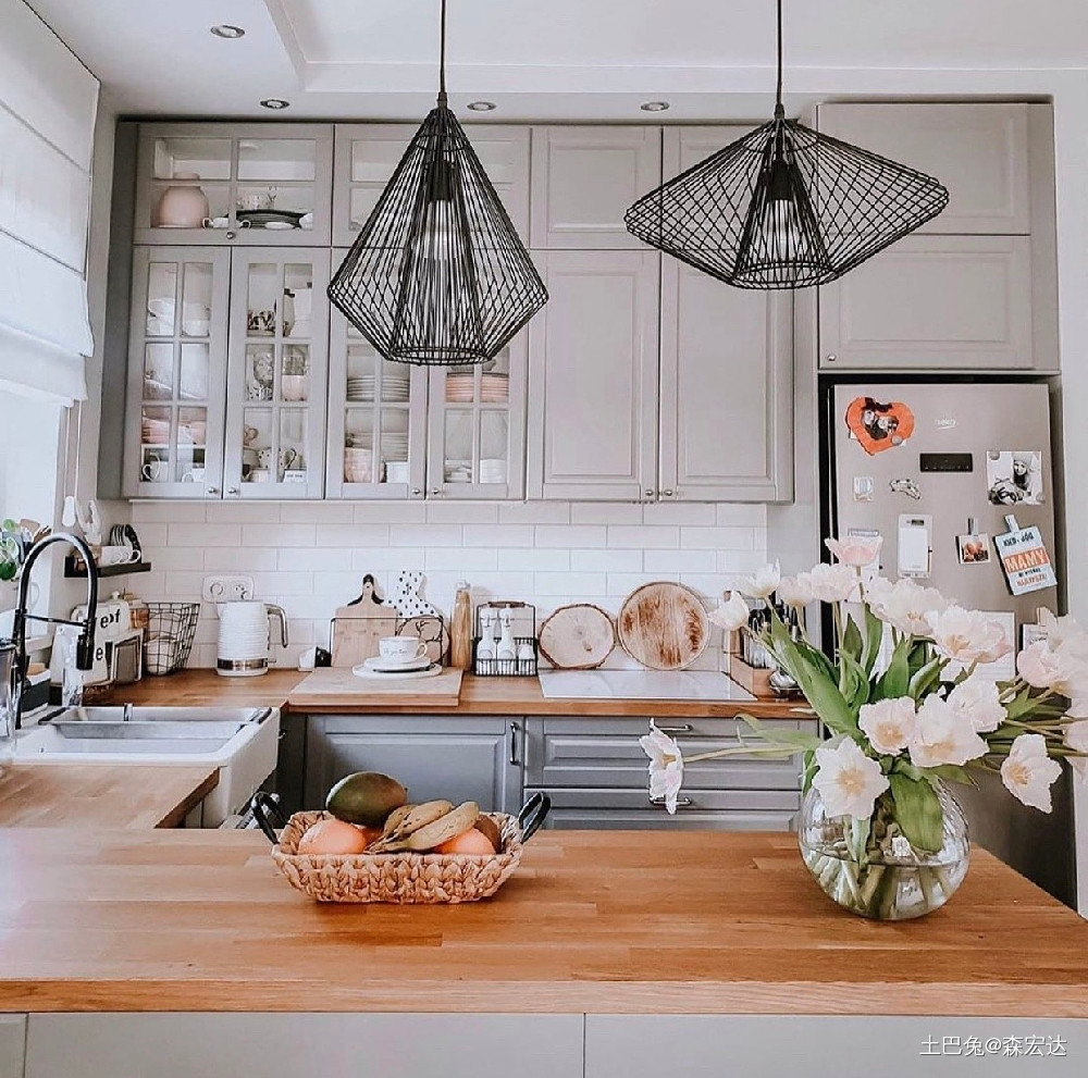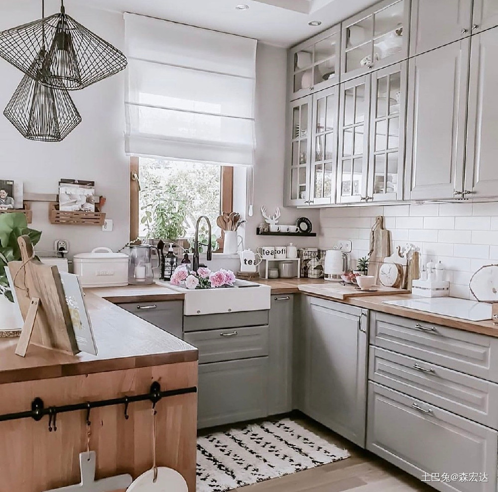 充满生活气息的乡村厨房,会流露出许多手工作坊的气息,一些木制或铁制的雕花时常被装饰在许多地方。