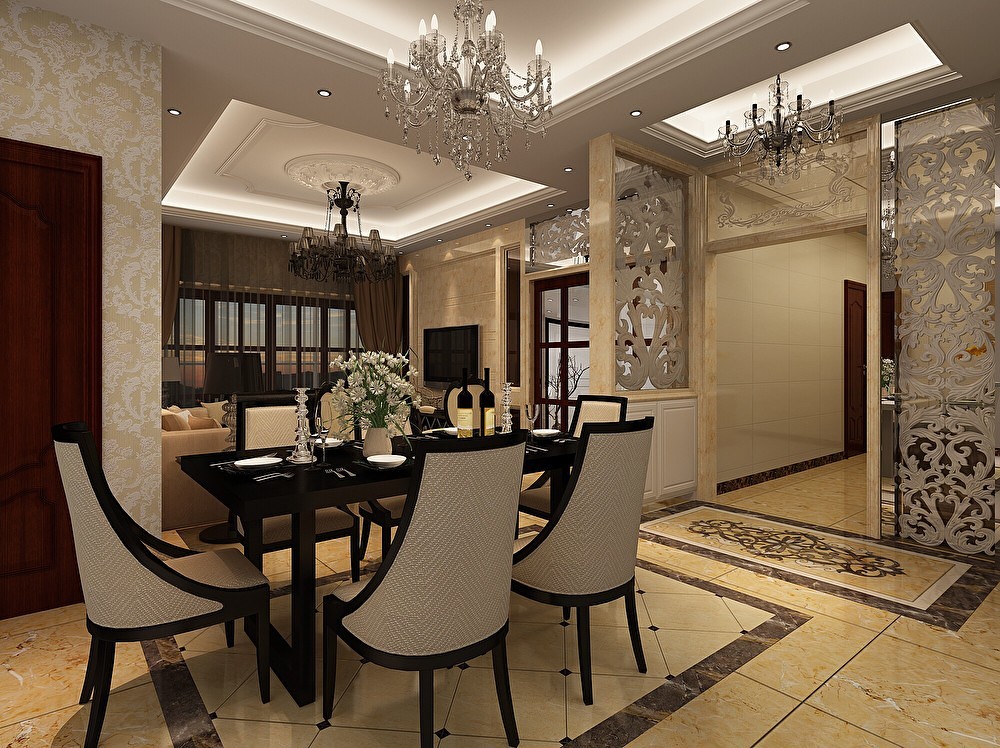 欧式风格总是给人以富丽堂皇、雍容华贵的感觉。华丽的灯具、镜子、小饰品、再加上欧式的壁纸完美的配搭.