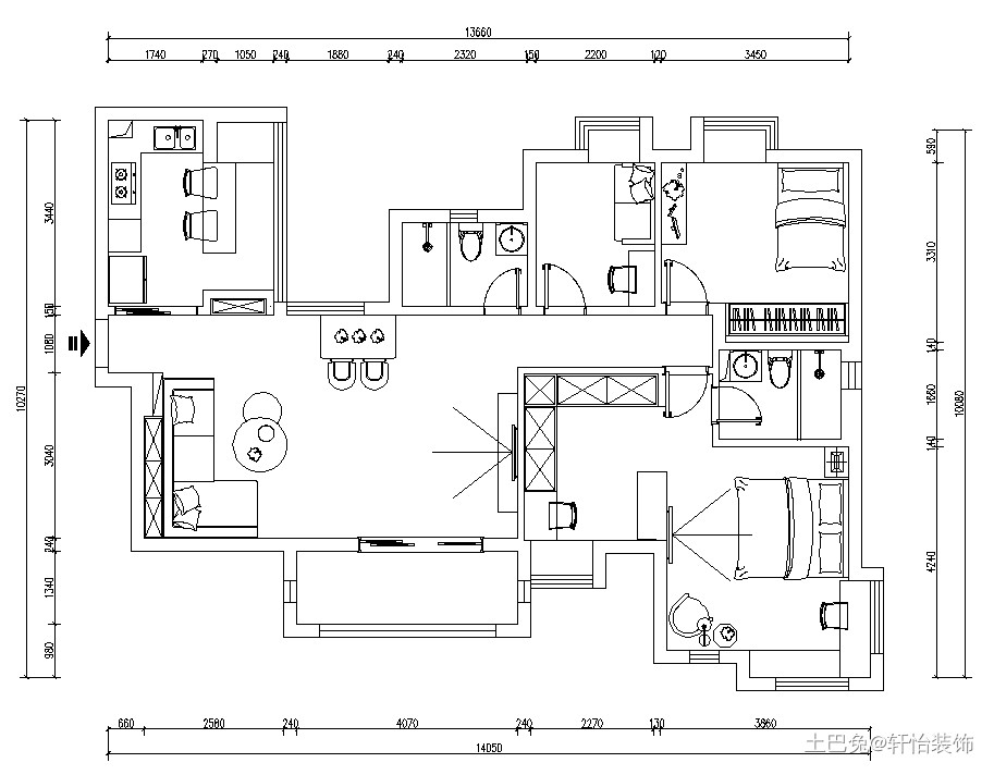本案是一套110㎡的简约法式风3室户型,业主喜欢简约大气的风格,对原木色情有独钟,满足家里需要的储存空间,看起来要整洁大方,而且对家里的采光有一定的要求。