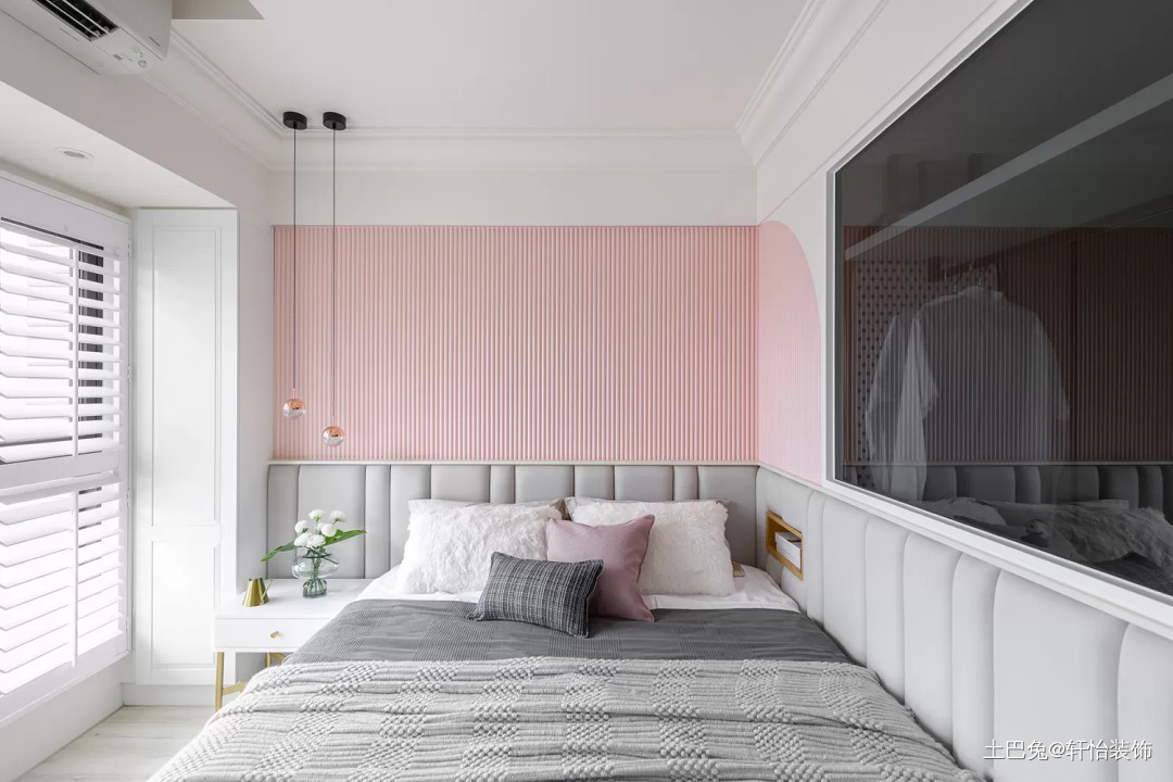 粉色的饰面板真的赋予了空间几分青春活力,白色的鲜花纯洁至极,是一份不敢随意惊扰的美好。