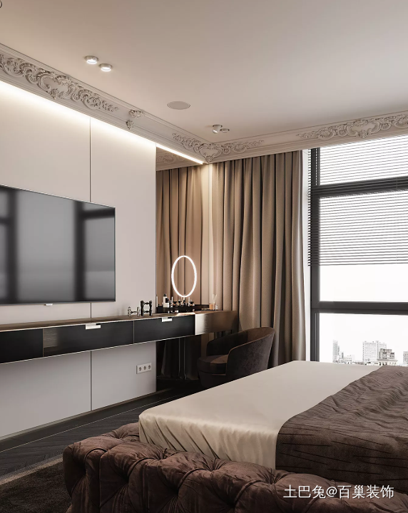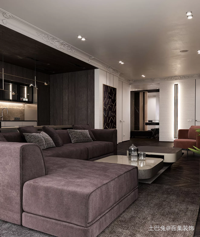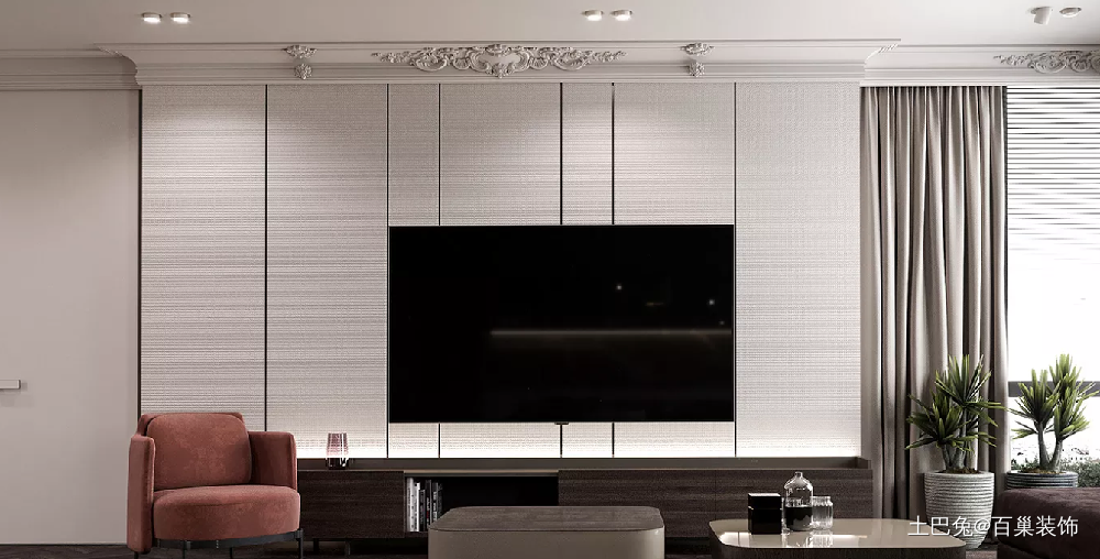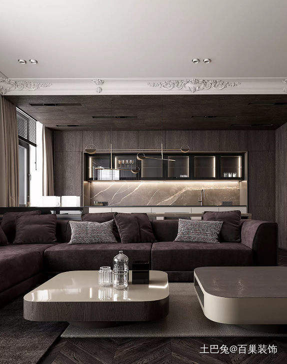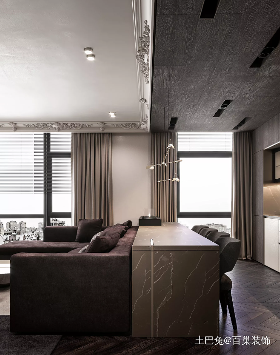 整个空间是有古典的美式感觉,让整个空间显得不再浮夸而是沉稳起来,但是适当的现代家具又会让整个空间更加的现代。