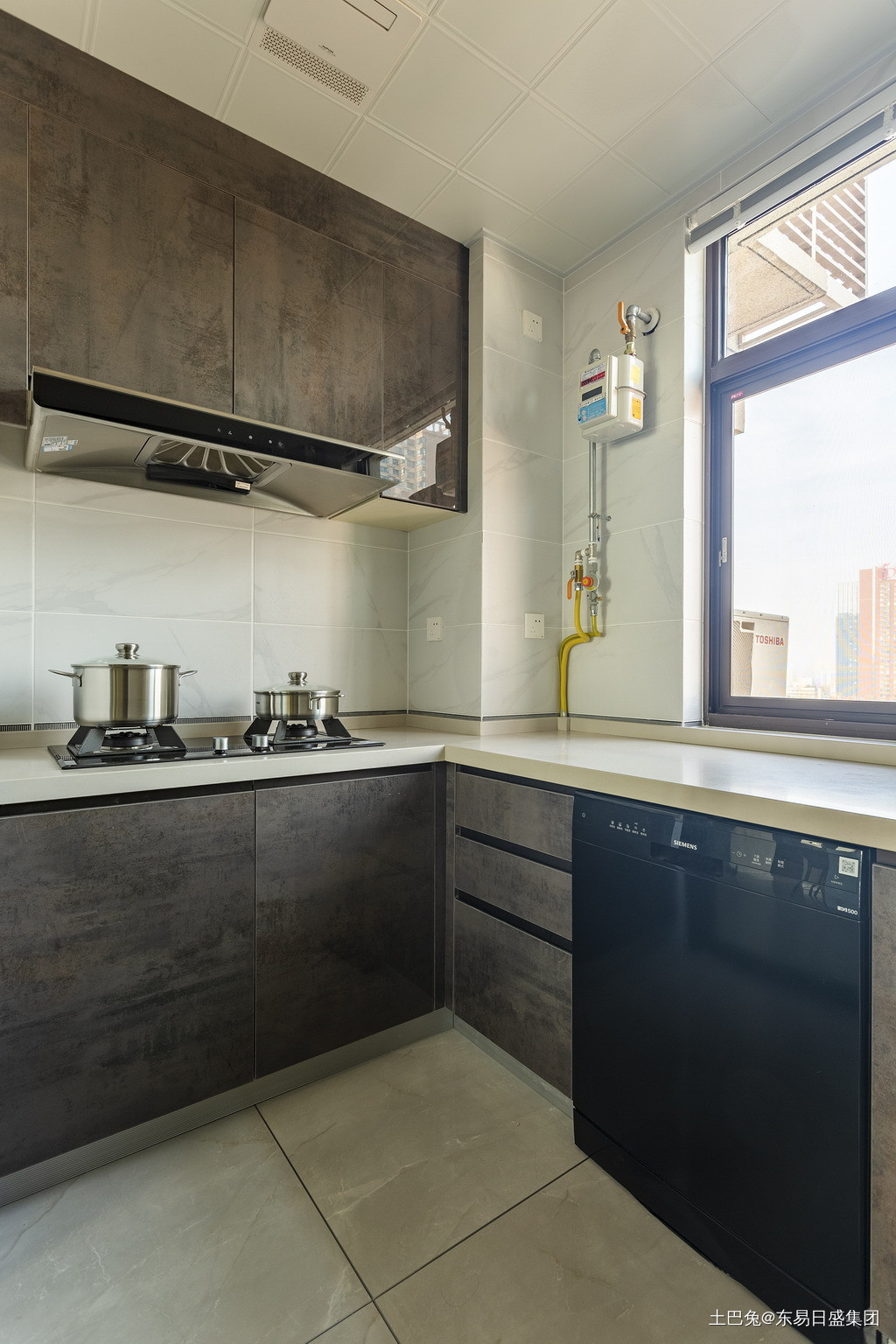 以木色为主,结构简单,空间宽敞,透明玻璃的门方便查看厨房的情况,安全性更强。