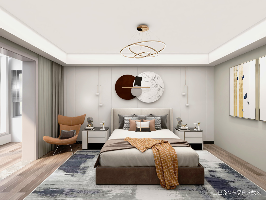 白色作为主基调的情况下,搭配部分黄铜饰品的金属感,给空间带来视觉上的层次感。在硬装方面没有做太多的造型设计,还是比较偏现代风。