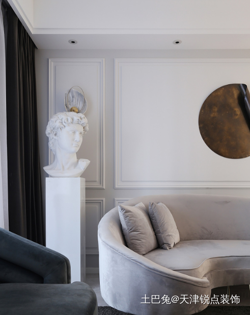 大卫石膏像放置于特意定做尺寸的底座上,注入别样的艺术气息,增加了空间个性的延展性。