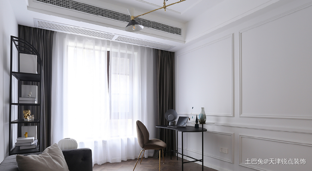 书房主要兼具办公学习以及好友小聚的功能,尽量简化了色彩,让家具成为空间的主角。