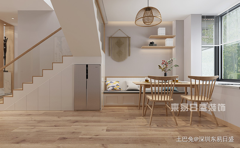 本案例为复式户型,日式风格。日式的装修追求一种淡雅深邃的意味讲求贴近自然,所以在选材上也是尽可能的贴近自然的原木材料,不同深浅色系的整体木材能够给家中带来不一样的视觉感受,在铺装地板前应该先打龙骨,避免地板受潮。