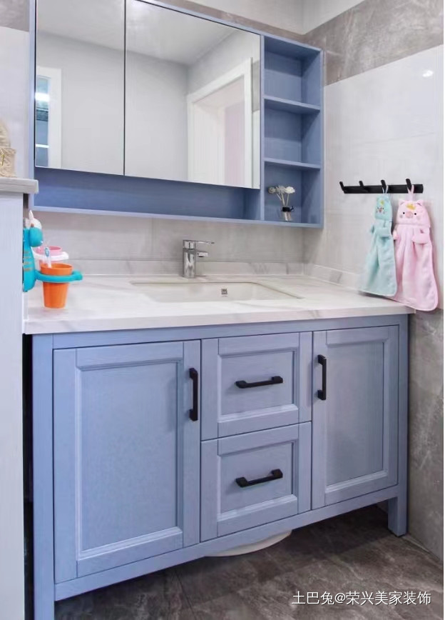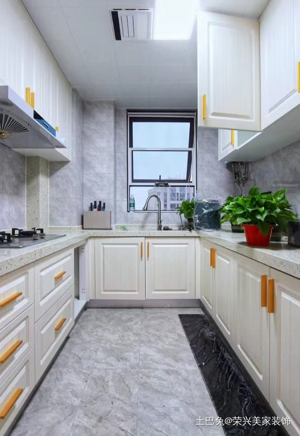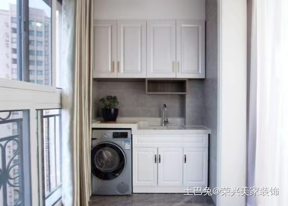 阳台设置洗衣区,结合收纳与功能性,吊柜底部设计开放格增加储物空间
