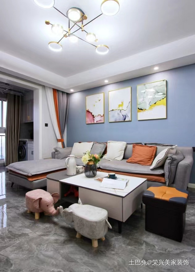 高纯色彩,简单吊顶柔软自然的配饰,让人想窝进沙发里