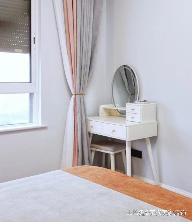 梳妆台是女主人精心打扮自己的地方,避免了窗口的光源直射,收纳整洁舒适