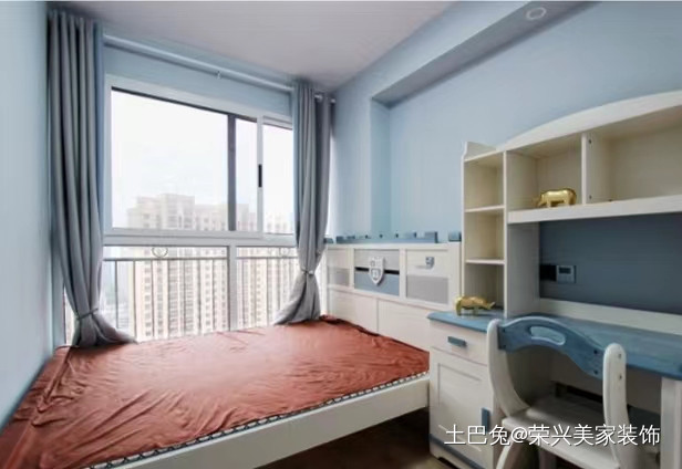 男孩子的房间整面落地窗,视野更加开阔,蓝色调的房间是男孩子的心头好
