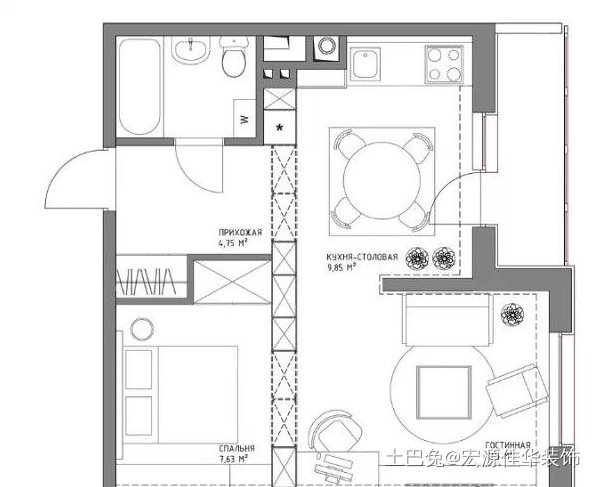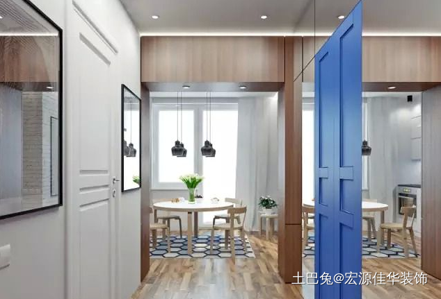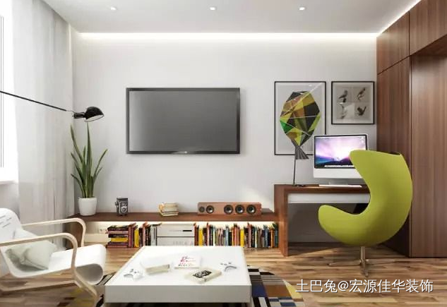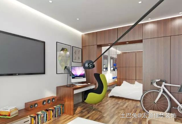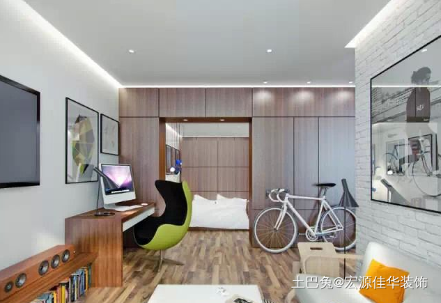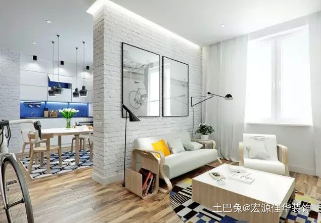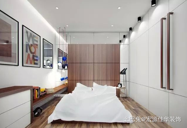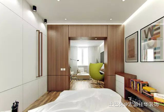 此方案极简主义是这个家的关键词,明亮而开放的空间使得视觉效果比实际上大很多。在这个小家,年轻的主人也需要自己的私人空间,我们利用衣柜中间框架作为客厅与卧室的分隔。
