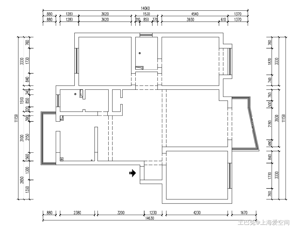 原始户型厨房靠近小阳台,中间有小隔墙。客餐厅区域有一个小空间的收纳间。将厨房整体空间扩大,将小阳台包括到厨房内,扩大整体的使用空间。以及客餐厅内的小储藏间改造了一下,扩大了储藏间的使用空间。