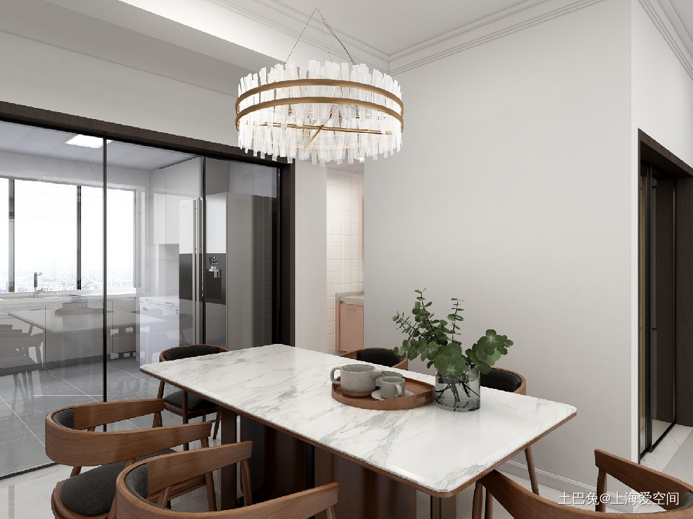 餐厅旁边坐了整体的餐边柜。桌子也使用的之前的新中式的桌子。