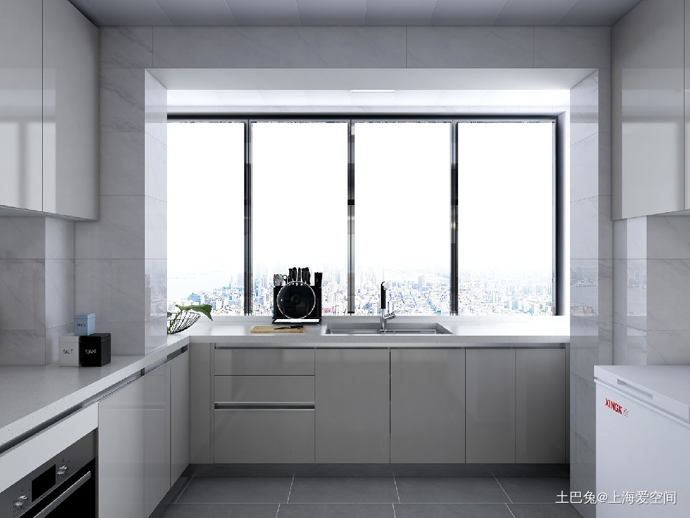 厨房的空间将小阳台也纳入之后,整体的空间很大,放了两个冰箱,一个冷冻柜以及一个双开门冰箱。