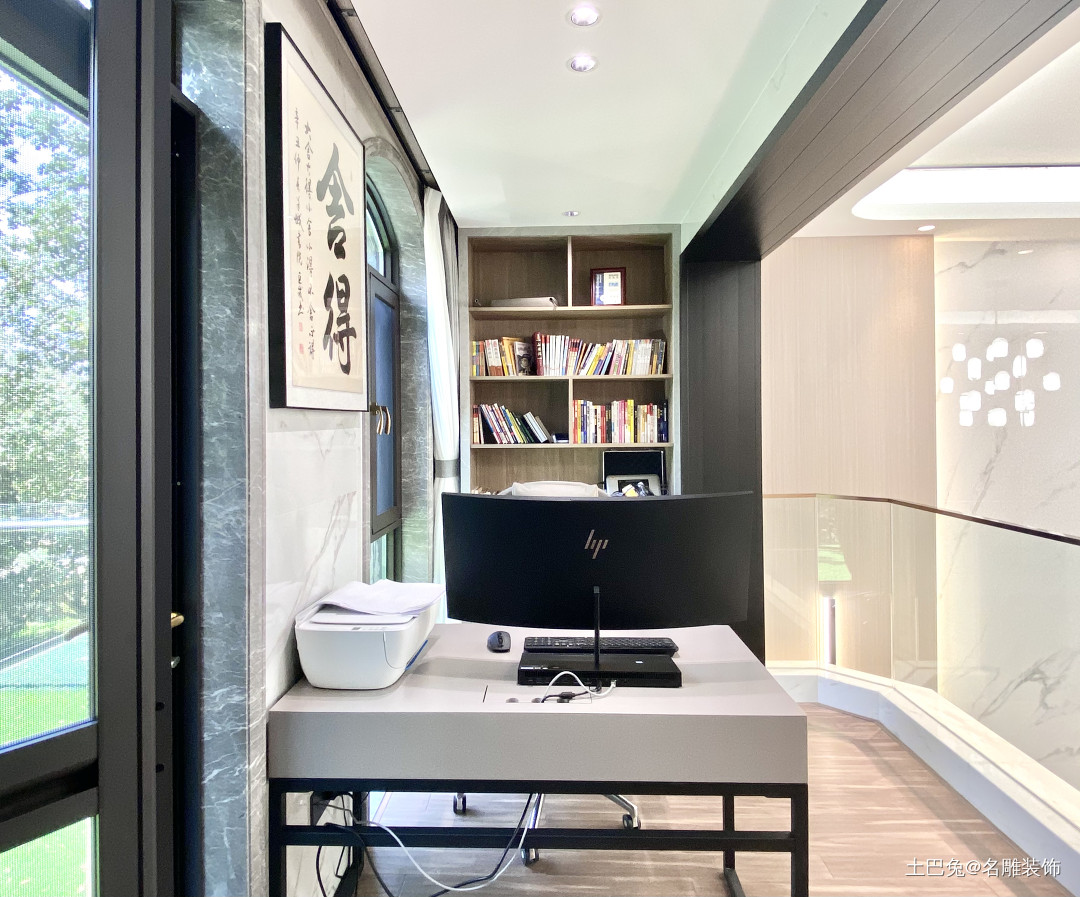 书房,从主卧窗户旁直入,由于复式楼挑高中空设计,从这里可以直看一楼的全景状态。