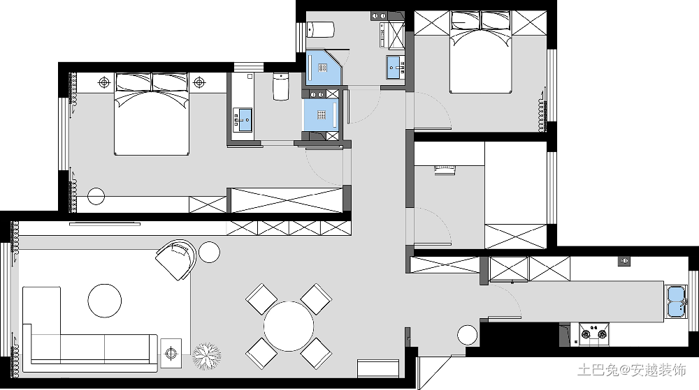 家,是情感与爱交融的场所,它并不需要金碧辉煌,亦不需要气势恢宏,它需要的是温暖和谐的生活意境以及符合居住者气质的生活方式。在本案设计中,设计师从情感出发,结合自然反璞色系的运用,营造了一个宁静质朴的家。空间是由物体组成和创造的,设计师在此基础上完成了本案97㎡空间功能及层次的建造。