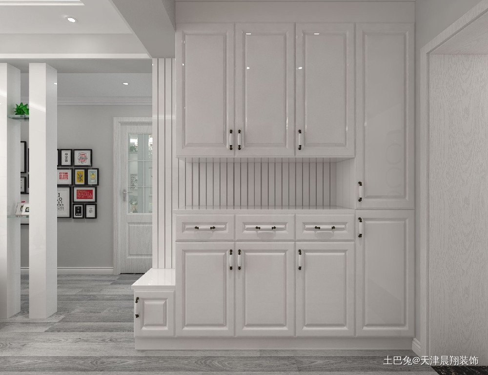 玄关处柜体突出现代装修的主题,柜体空间较大。
