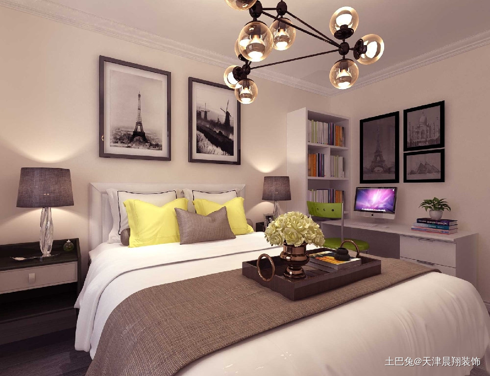 卧室以白色和咖色为主色调,使卧室整体有温馨,居家的氛围。
