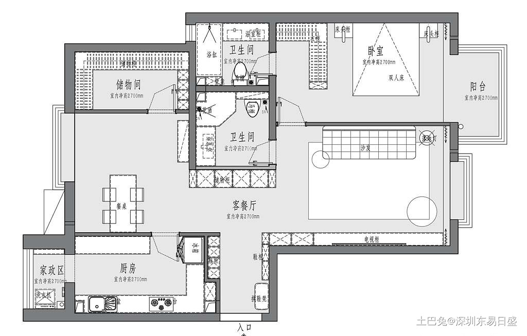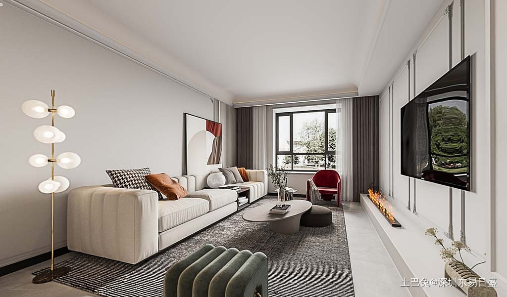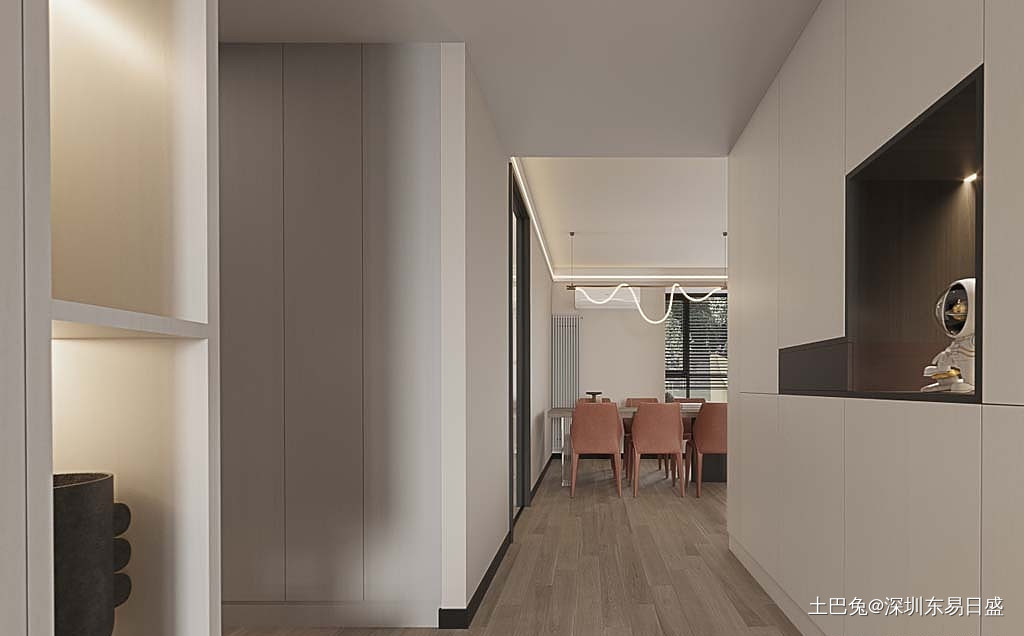 本案设计中,在颜色与质感的搭配下,展现出现代风格外观简洁流畅的特点,无论是注重内在精神的主观生活方式,还是通过空间活动所表现出的哲学性氛围,都表现了材料的纯粹性、空间的艺术性和审美的理想性。
