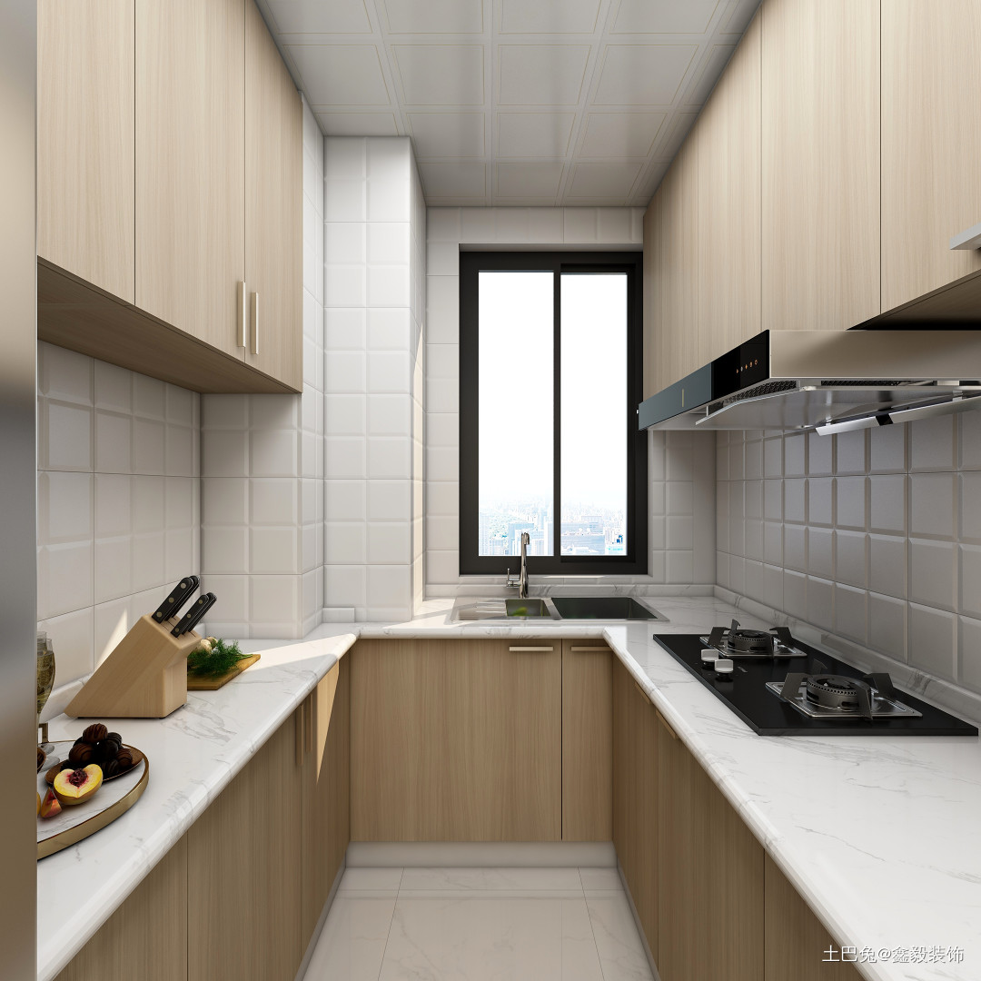 厨房就简单多一些,两边做吊柜,橱柜,合理的利用每个空间,收纳烹饪用品。