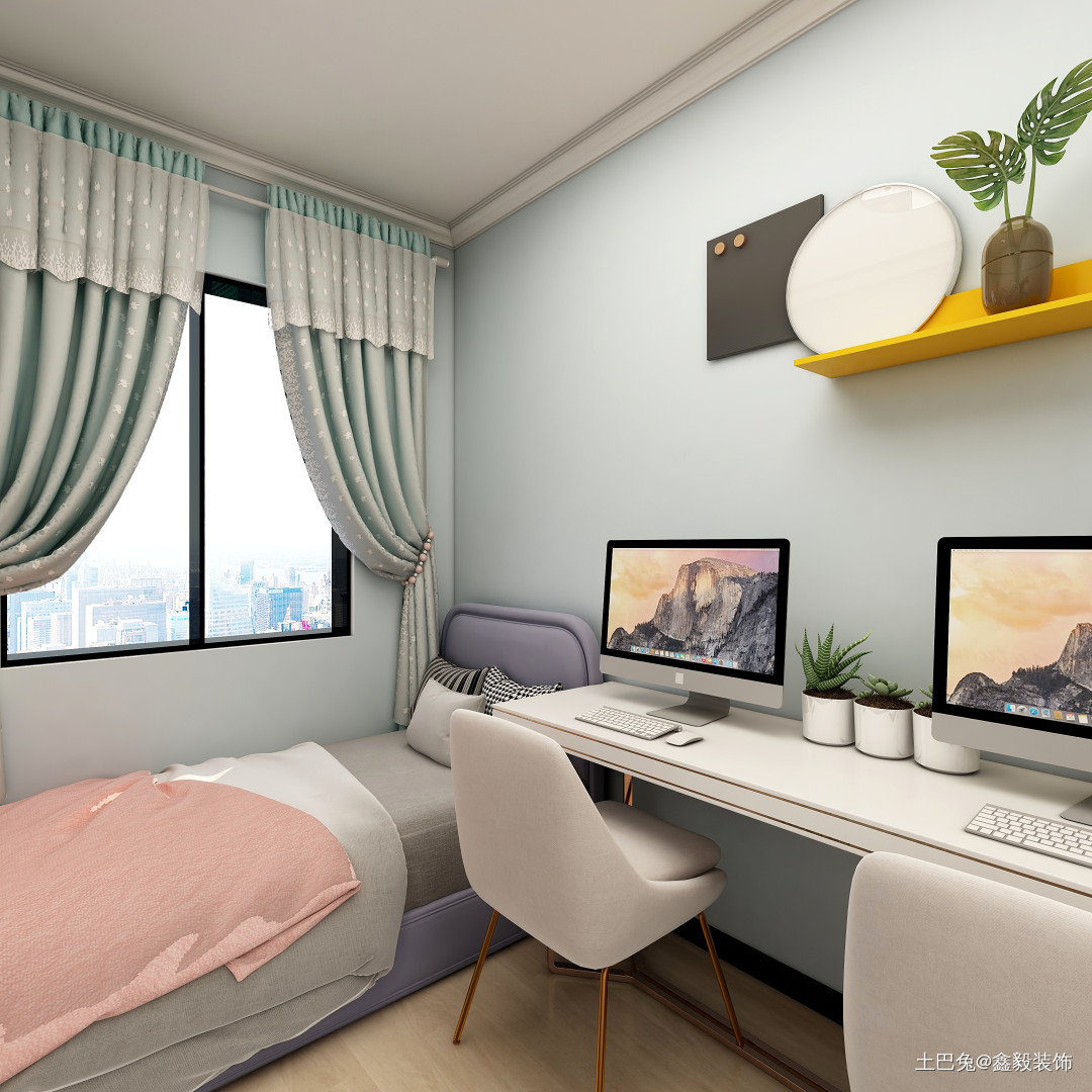 小孩房采用了一米二的床,和简约式书桌,整体搭配小清新风!