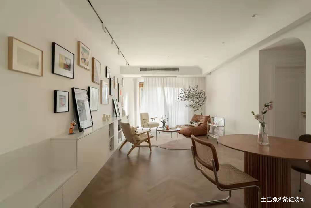 客厅的定调,通过曲线和半圆弧元素,柔和原本结构上的硬朗,让人在方框中挣脱束缚感。从进门的一侧延伸至整个客厅的储物柜,弥补了玄关收纳的不足。墙面每一幅精挑细选的挂画,让空间多了一份艺术感。