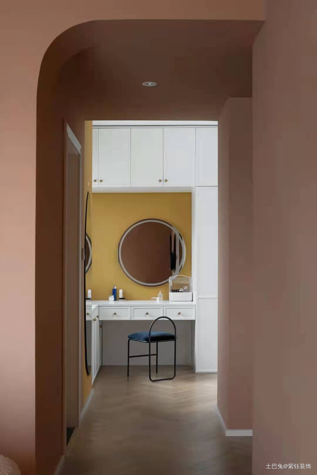 主卧和原本的客房合并,透过半弧的门洞,形成了独立的衣帽间。大面的梳妆镜,灯光可以把脸的轮廓照得明朗。