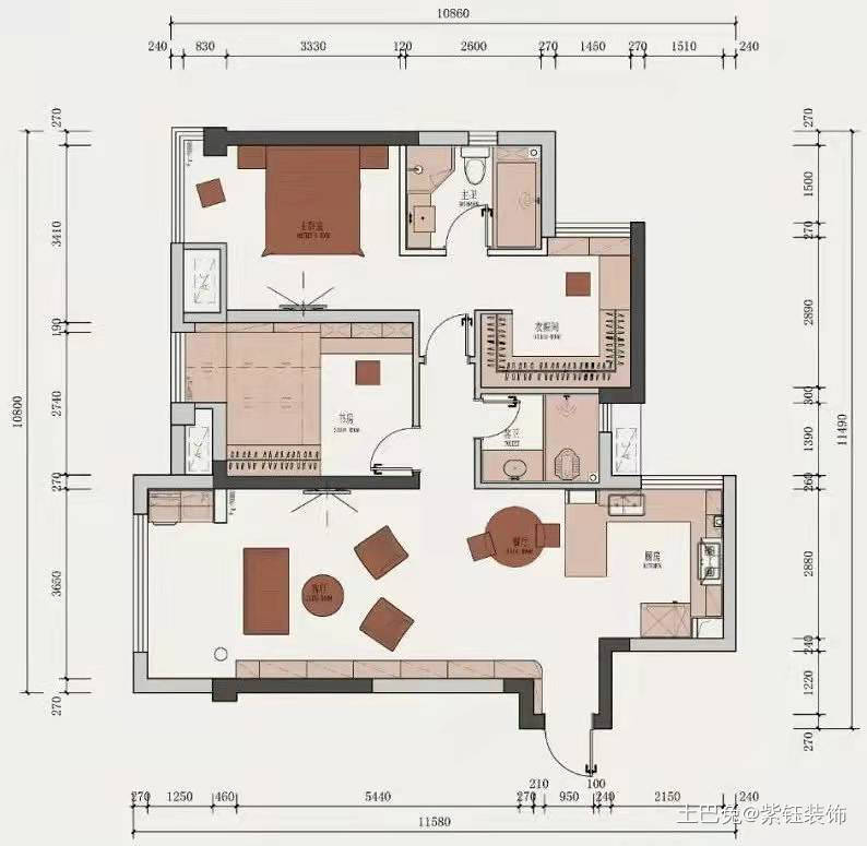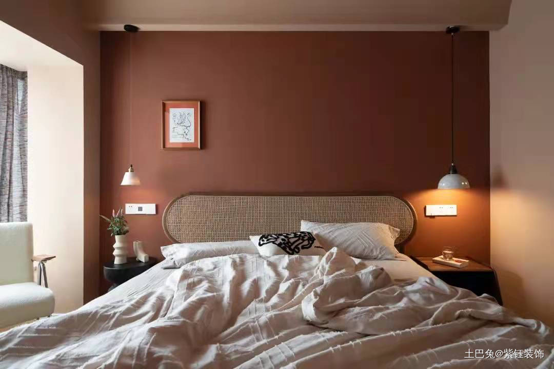 主卧室设计像是落霞在沙漠中的余晖,又像是秋日层林尽染的漫山红叶