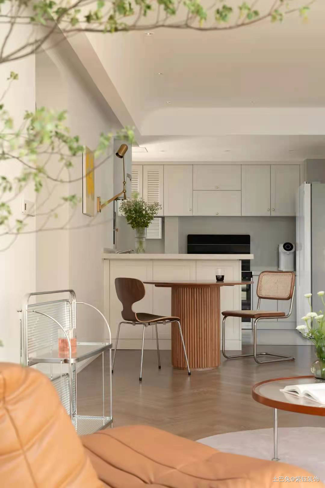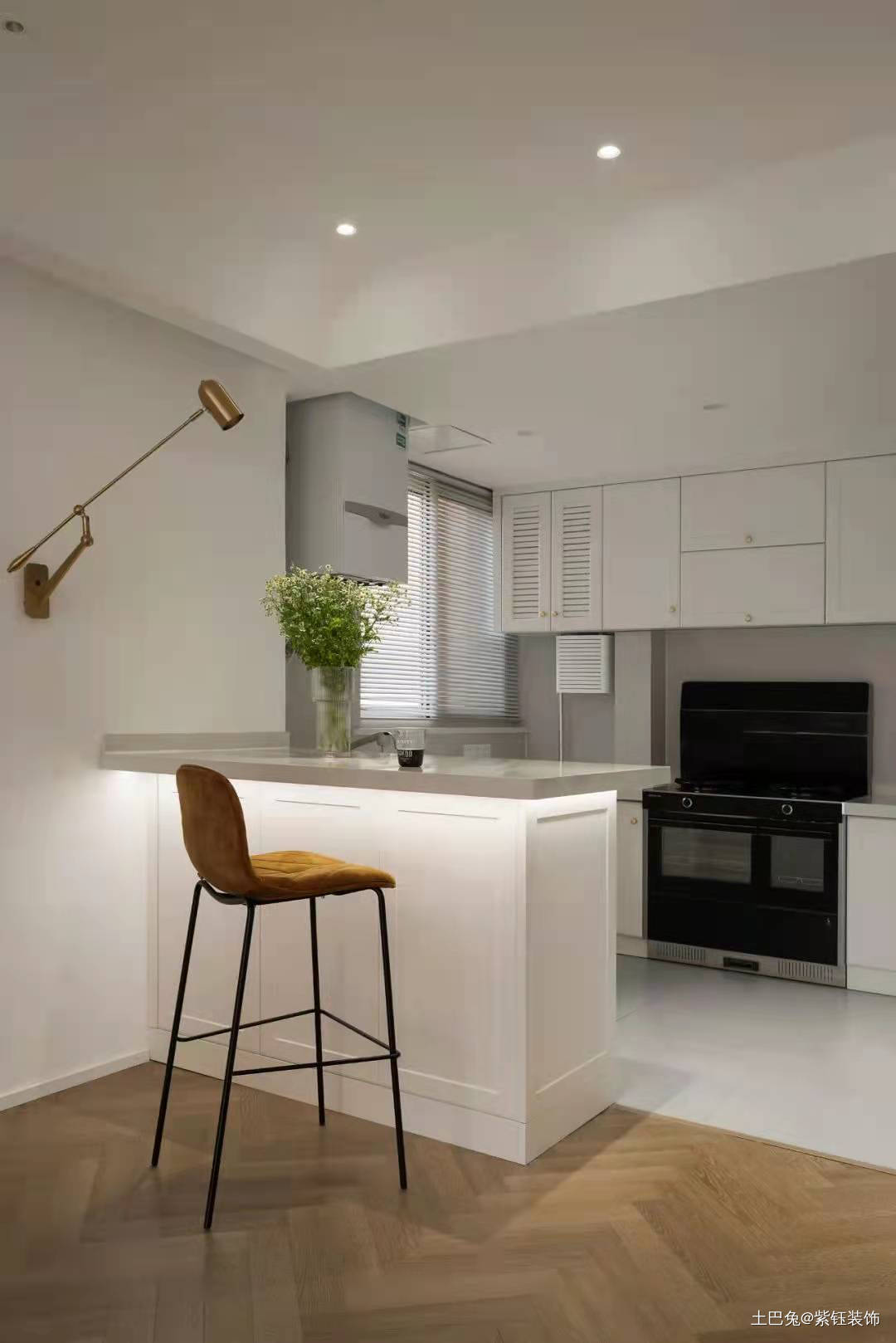 厨房做了开放式设计,朋友偶尔来聚会,岛台承载了一定的社交功能,吧台嵌入灯带,即便一个人就餐,也有一种浪漫的仪式感