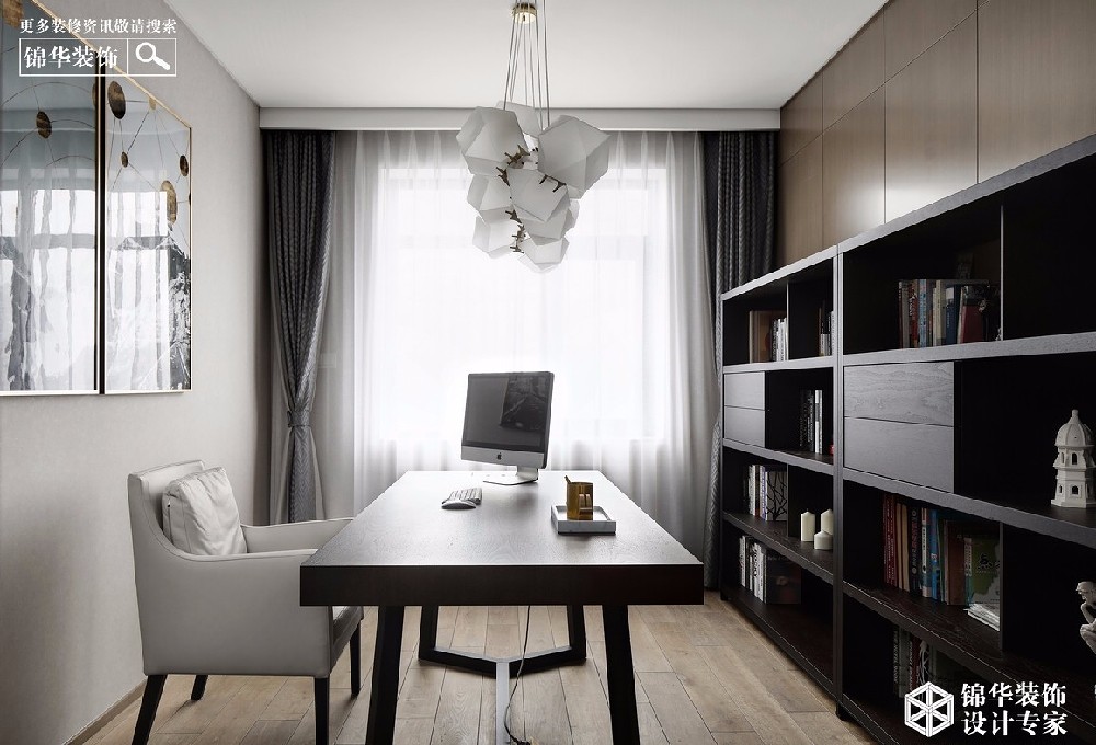 建筑原来的三个房间划为主卧,功能分别为书房、卧室、衣帽间。整个空间延续了极简的风格和灰色的搭配。床头墙面选择了高雅的灰蓝,为卧室平添了一份静谧。书房主要为业主提供阅读,上网和休闲的功能,书柜的选择就不需要那样拘谨,更多的有些装饰的味道,让人们熟知的沉闷的书房多了一丝轻松的氛围。