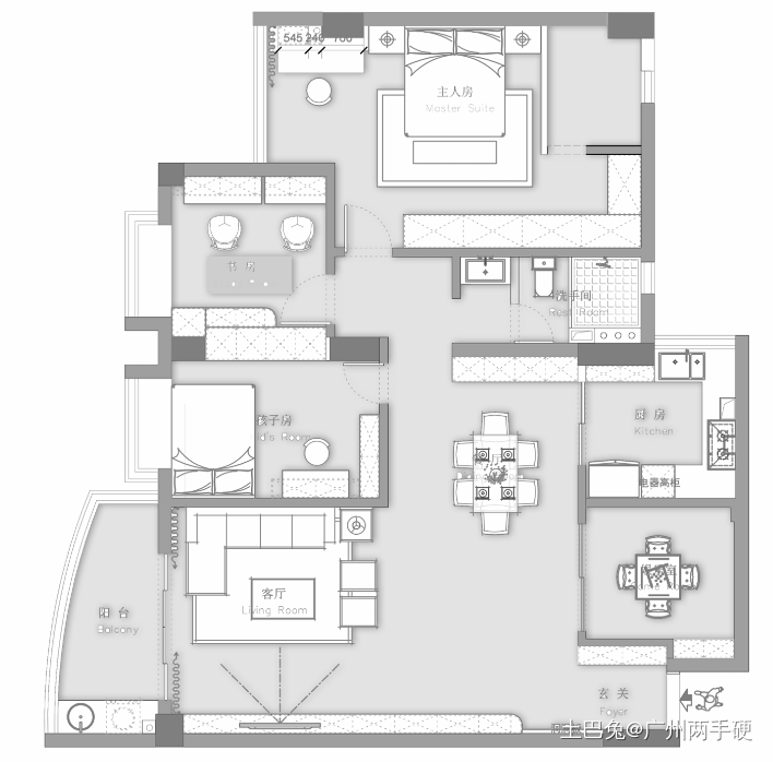 2、 整个房子的动线不是很流畅,主卧空间比较明显