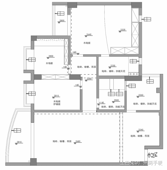 这是本案最初的户型图,套内面积约133平,可以通过看出以下问题: