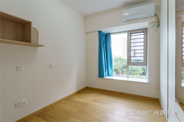 次卧跟主卧一样,利用墙面定制整排到顶衣柜,靠卧室一侧可以放上当季常用的衣物,靠内则收纳不常用以及床品套间等物品。柜门预留了暗槽的造型方便开关门,效果同样简洁舒适。