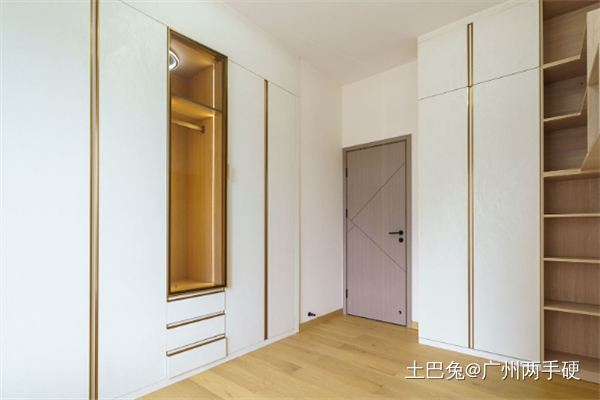 4、 考虑到次卧后续收纳,把两个房间的墙体拆除用柜子当做隔断。