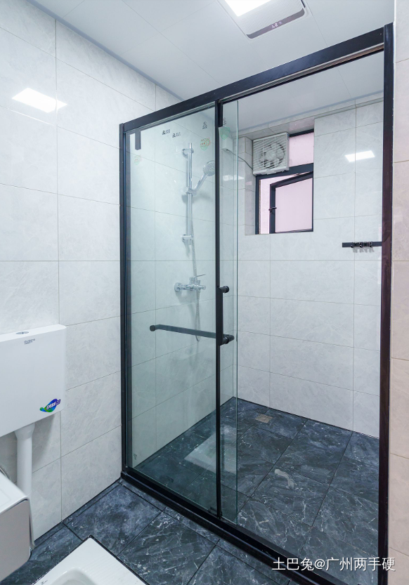 卫生间采用干湿分离,淋浴区新建玻璃隔断,配备内嵌式蹲厕,干净明了。