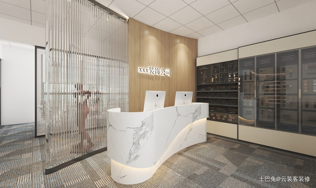 北京市通州区,某装修公司的办公室,设计及装修。300平米左右,要求有接待区,产品展示区,有办公区,会议室,前台接待等等。(业主设计预算问题,出了局部重点区域效果图,未全部展现)