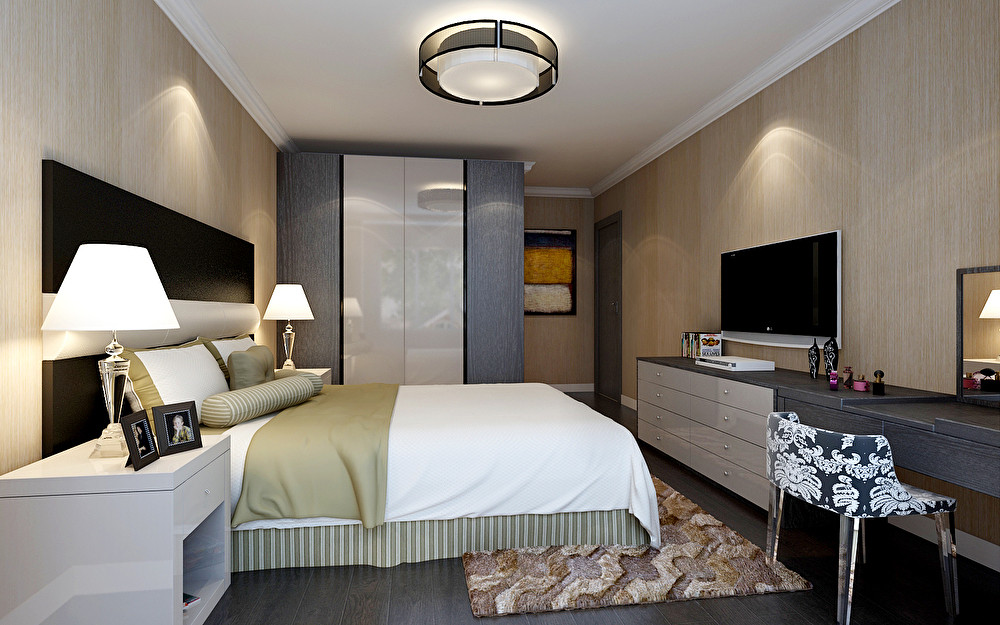 卧室也基本按照业主需求设计,满足储物与视听的同时,也为女主人留出梳妆台,使卧室更舒适温馨。