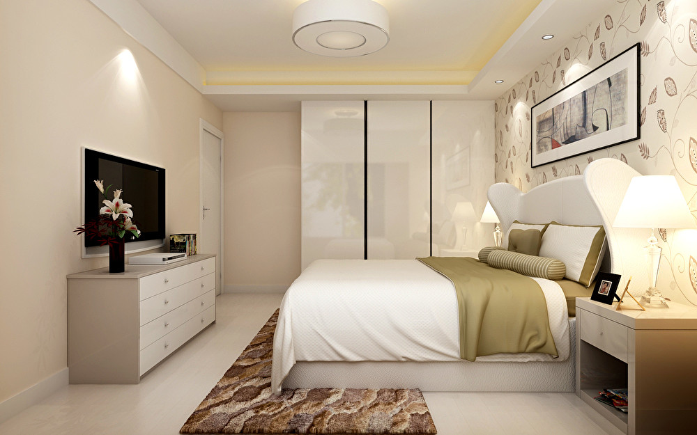 这间卧室是给业主父母当做临时的休息卧室,满足了父母的储物及视听功能。
